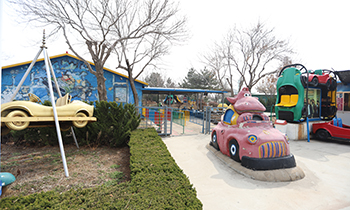 有多辆进口汽油发动机的赛车。赛道500多米,赛道两旁是一些微缩景观,有玉米人农庄、白雪公主和七个小矮人、蓝精灵、电视转播塔,在这里驾驶着赛车,仿佛驶入美丽的童话世界。驾校左前方有一辆老爷车,车上坐的是玉米人农庄的所有成员,不要小看了这辆车,它和真车的价值是一样的。