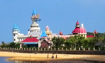 是随着潮夕的涨落变换水位的海水人工湖,在这里乘脚踏船在湖中荡漾,会别有一番风味,让您充分领略大自然赋予的秀美景色。